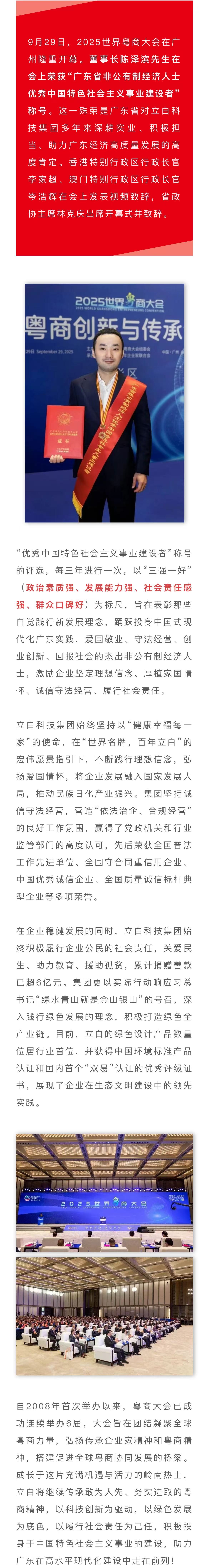【会长风采】“湾区制造”获评企业——立白科技集团董事长陈泽滨荣获广东省非公有制经济人士优秀中国特色社会主义事业建设者称号!