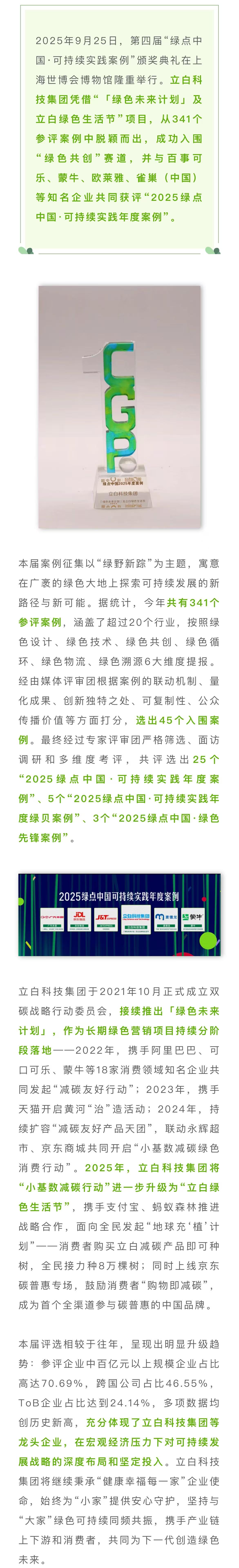 【会长风采】“湾区制造”获评企业——立白科技集团荣获“2025绿点中国·可持续实践年度案例”