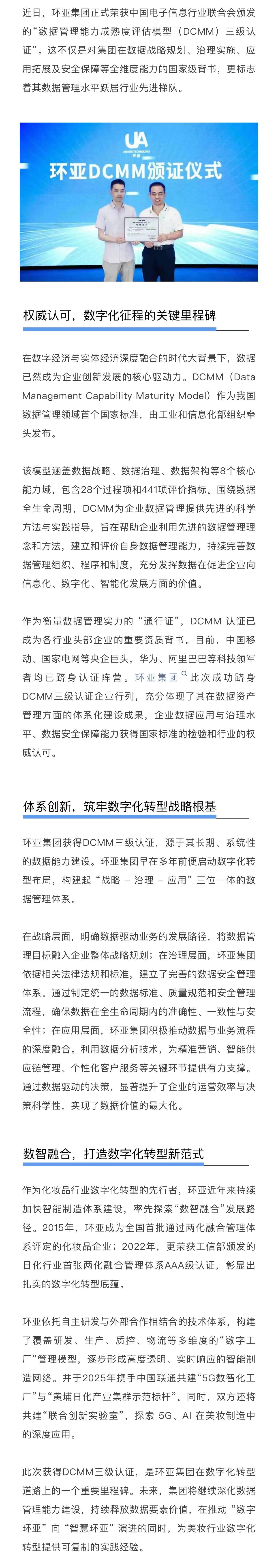 “湾区制造”获评企业——环亚集团荣获DCMM三级认证, 数据管理能力获国家权威认可
