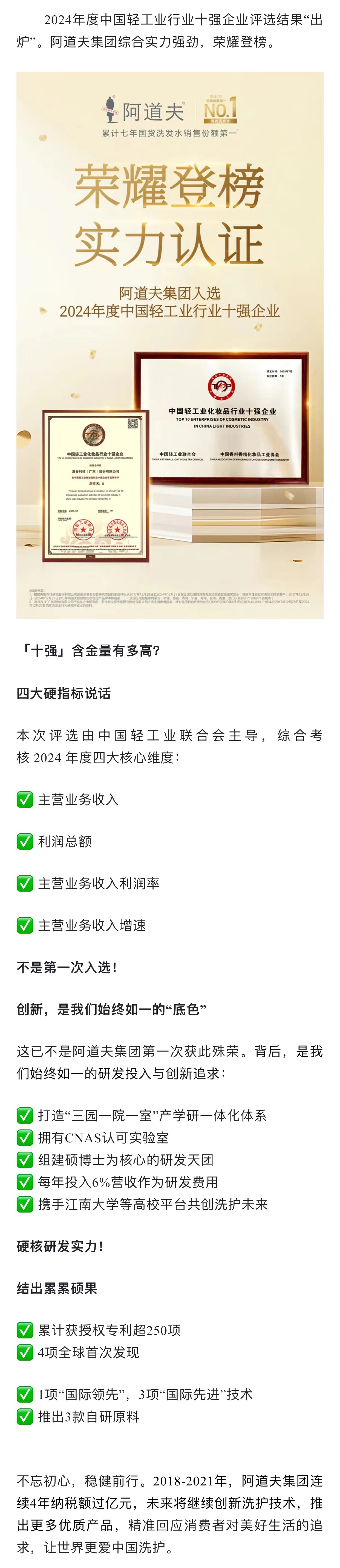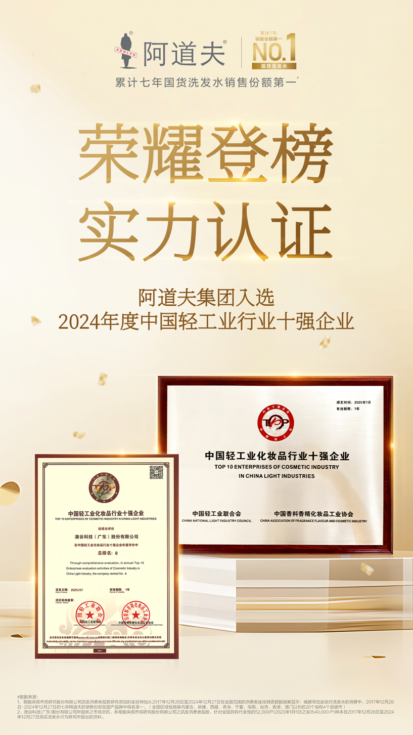 【副会长风采】“湾区制造”获评企业——阿道夫集团再次入选中国轻工业化妆品行业十强企业!