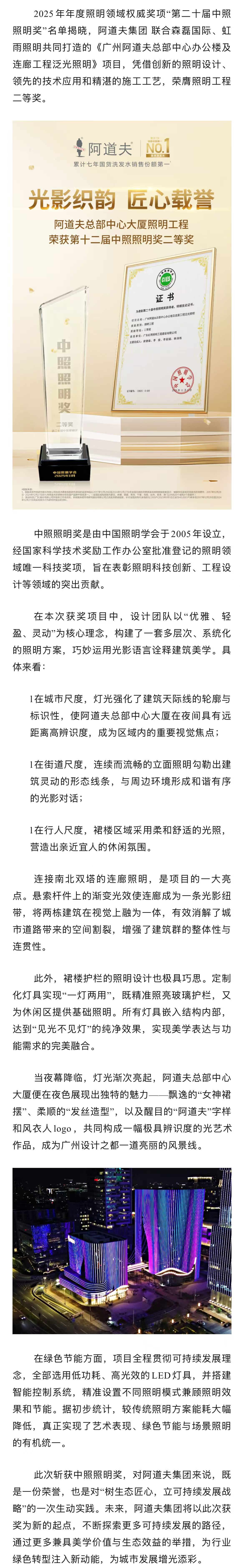【副会长风采】“湾区制造”获评企业——阿道夫总部中心大厦照明工程荣获第十二届中照照明奖二等奖