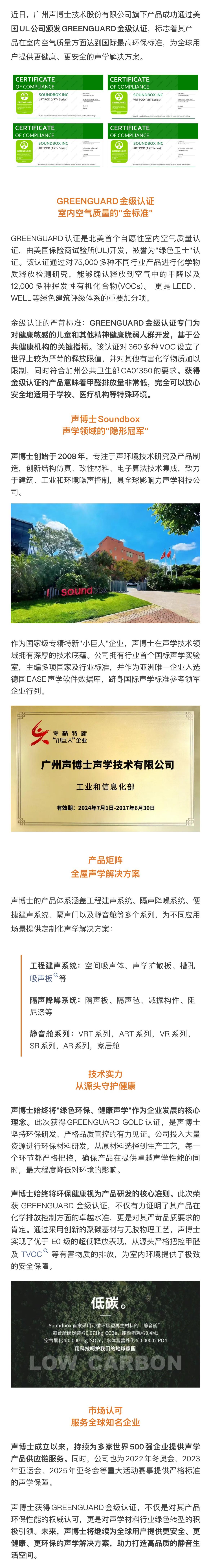“湾区制造”获评企业——声博士静音舱荣获GREENGUARD金级认证,以国际标准守护健康声场!