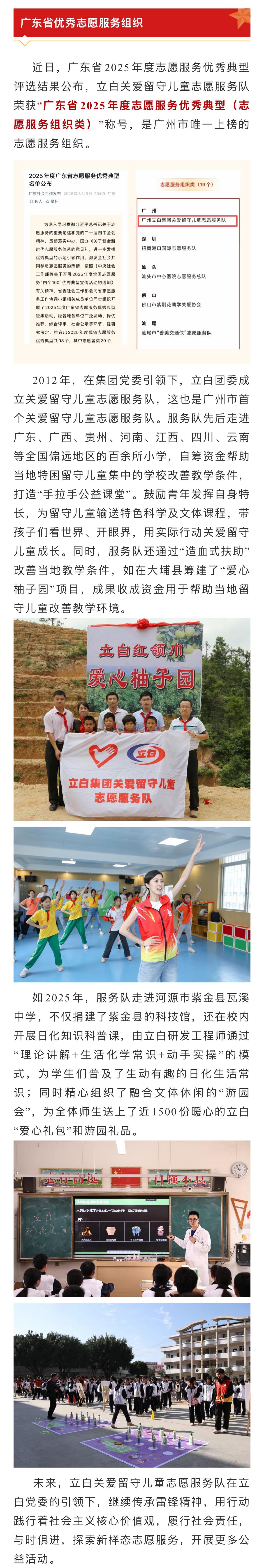 【会长风采】“湾区制造”获评企业——立白关爱留守儿童志愿服务队获省级称号