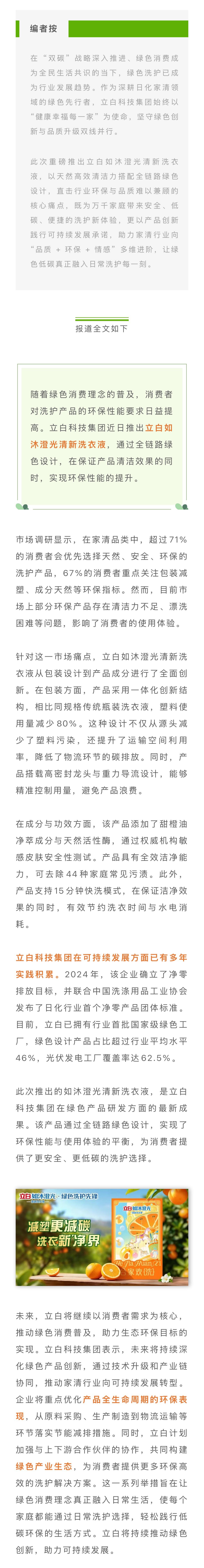 【会长风采】“湾区制造”获评企业——立白推出如沐澄光清新洗衣液 全链路绿色设计引领洗衣革命